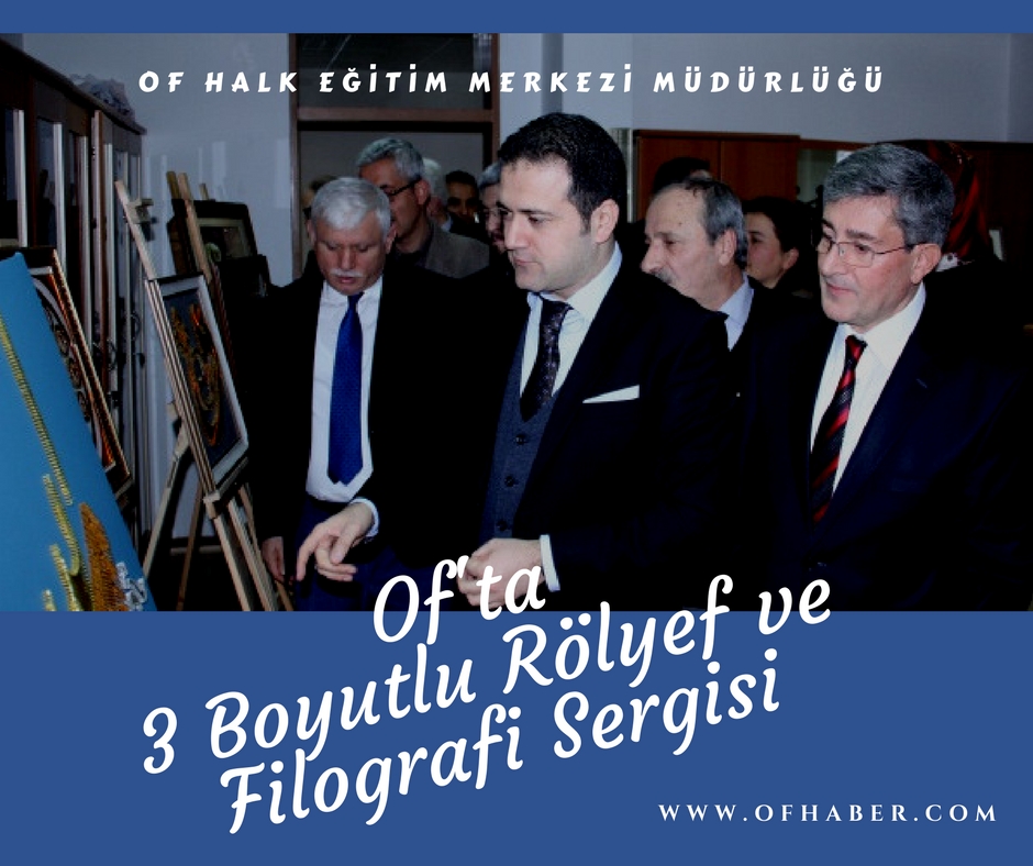 Of Halk Eğitim Merkezi 3 Boyutlu Rölyef ve Filografi Sergisi´nin açılışını Of Kaymakam'ı Eyüp FIRAT ve Of İlçe Milli Eğitim Müdürü İdris KABAHASANOĞLU yaptılar. El emeğiyle yapılan eserler ziyaretçiler tarafından ilgiyle karşılandı. Kaymakam Eyüp Fırat, "bu muhteşem eserlerin alıcıyla buluşturulması için gerekli çalışmaların yapılması gerektiğini" belirtti.